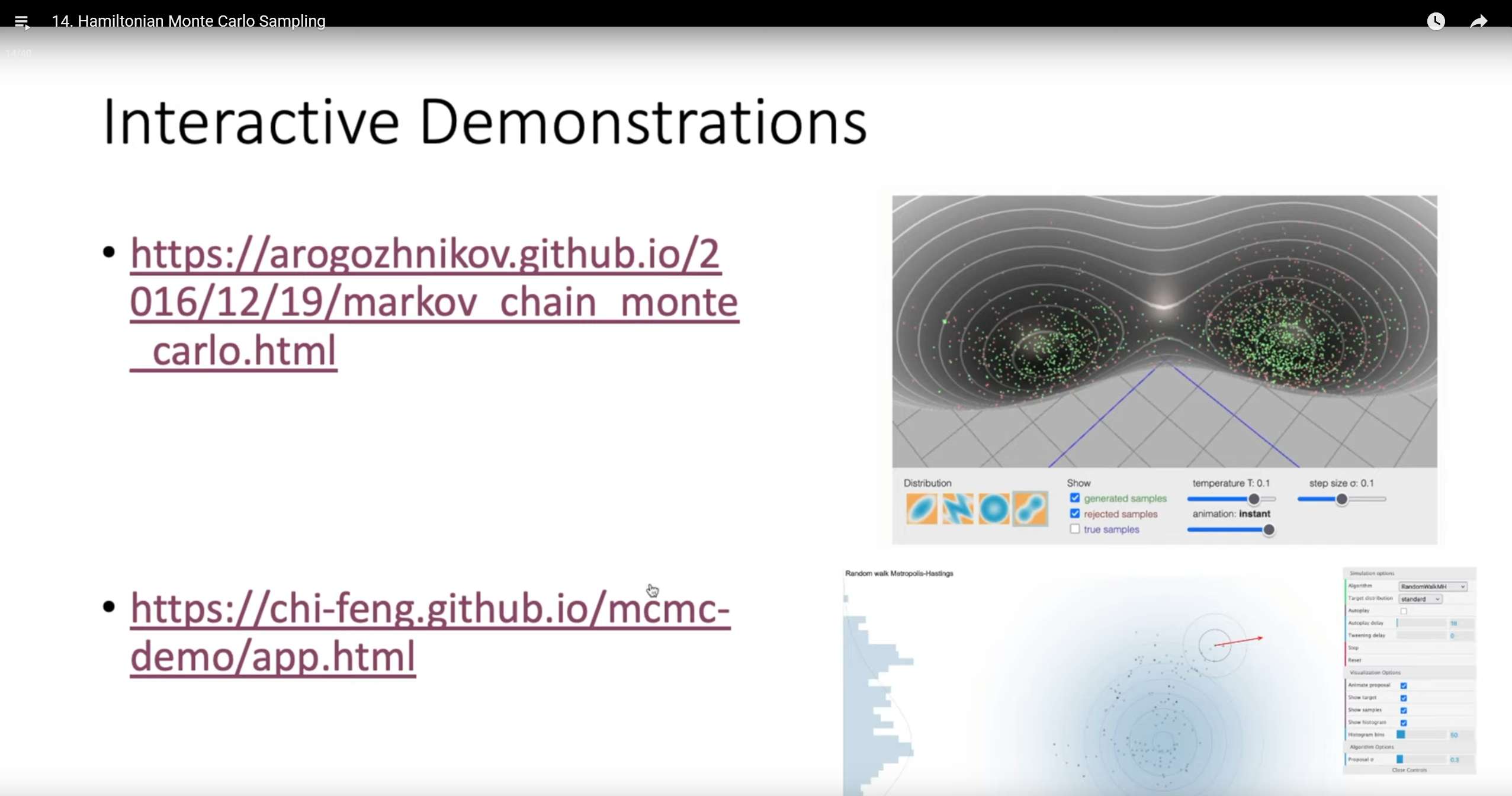 This lecture continues to be taught by the TA, introducing a more powerful Markov chain Monte Carlo (MCMC) method designed to overcome the main weakness of the standard Metropolis-Hastings algorithm: its inefficient "random-walk" exploration in state space. The new method develops a more "intelligent" proposal mechanism by borrowing concepts from classical mechanics.