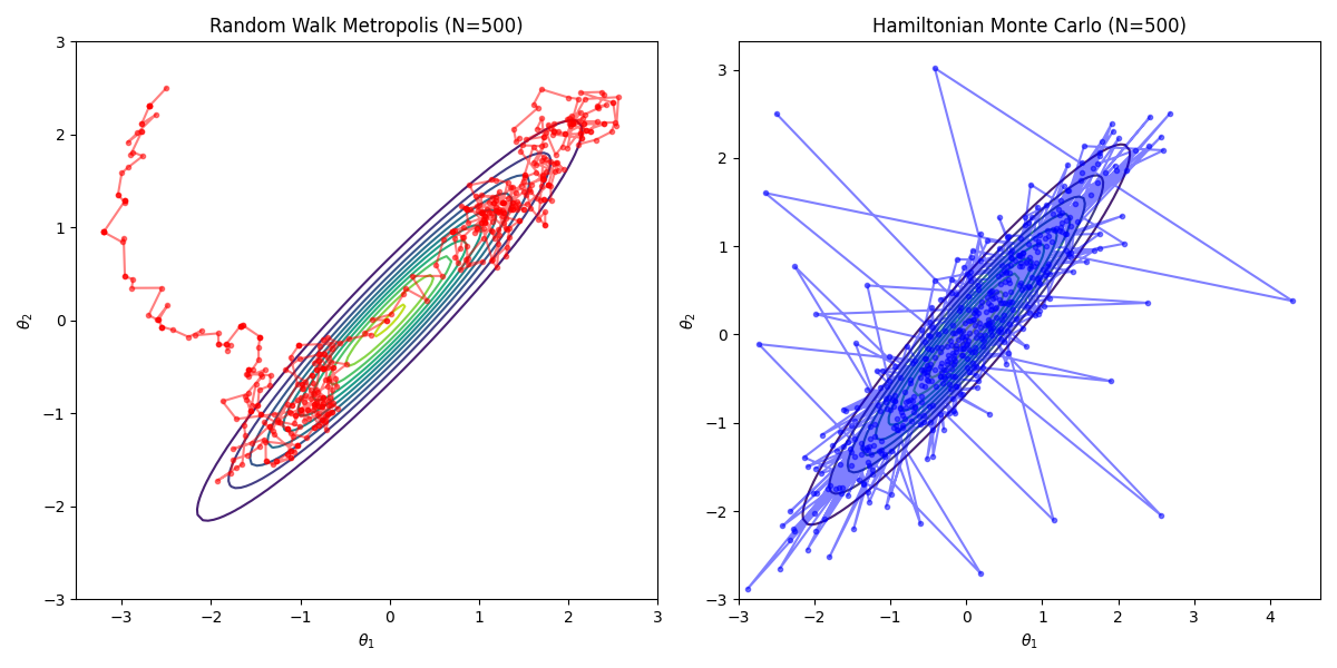 5. Visualizing HMC vs. Random-Walk Metropolis¶
