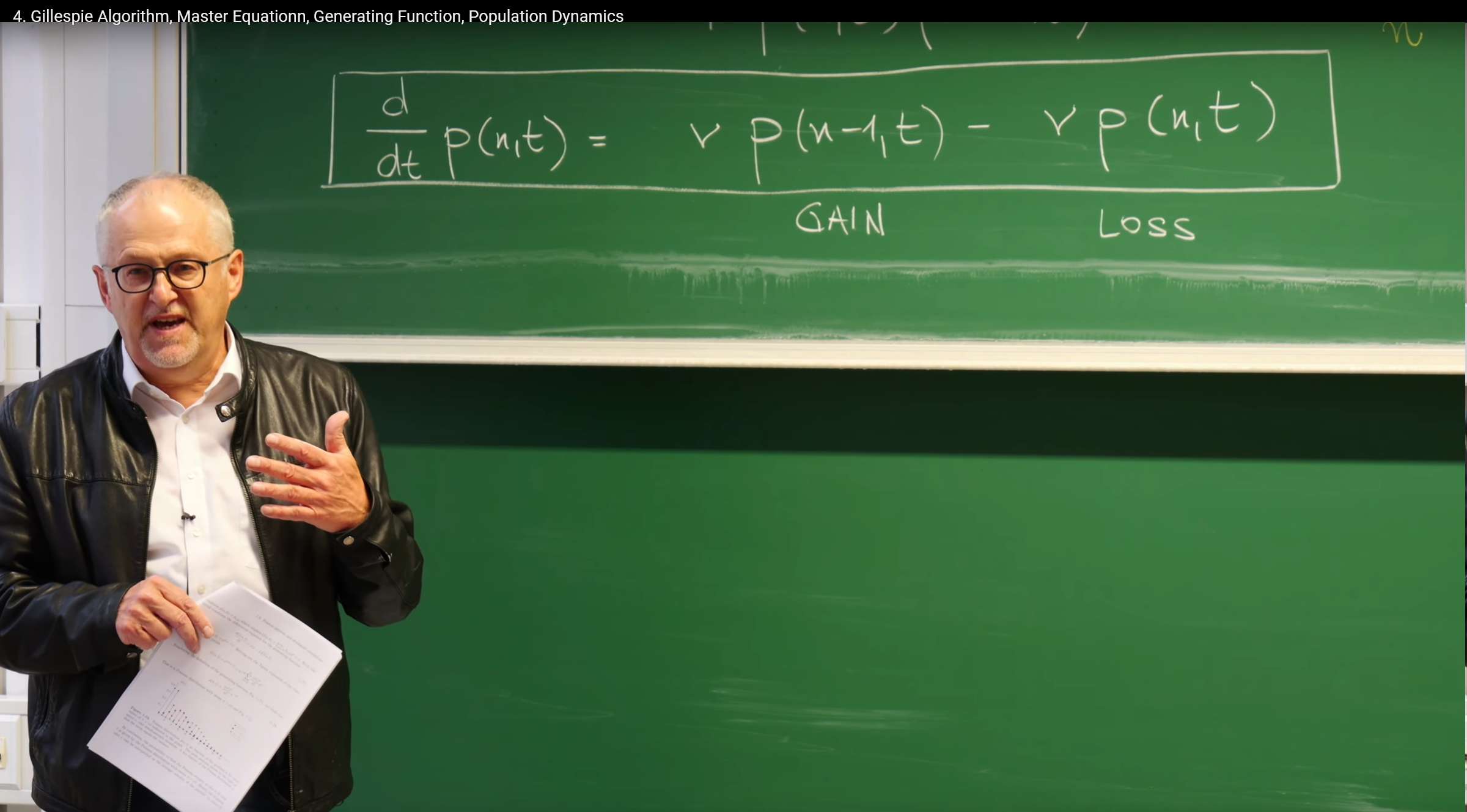In the later part of the lecture, the professor also showed the matrix form of the master equation: