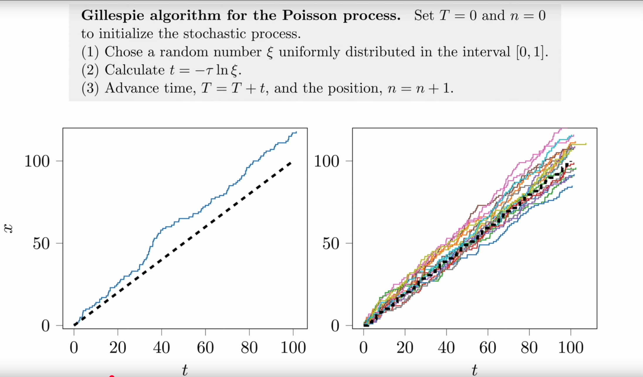 Based on the above principle, the Gillespie algorithm for simulating the Poisson process can be clearly summarized as the following three-step loop: