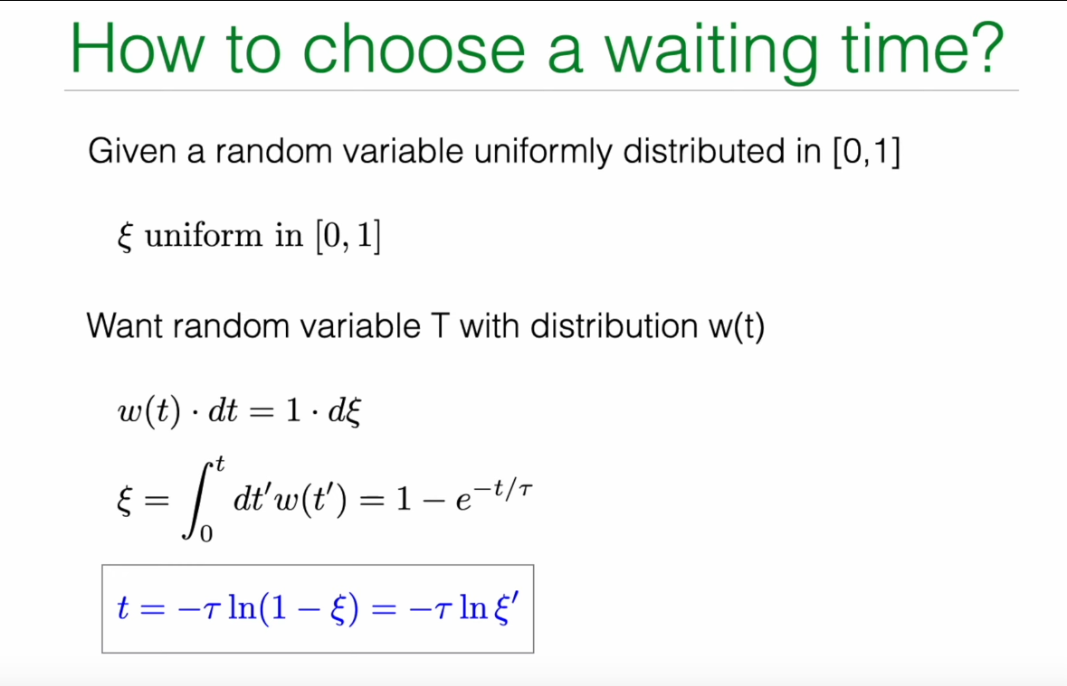 In the lecture notes, the professor used the characteristic time \(\tau=1/\nu\) to express this, writing the formula as \(t=-\tau\ln(\xi)\).