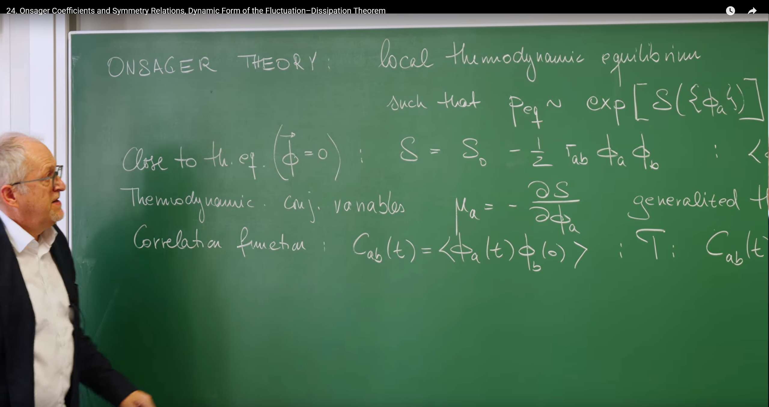 为了描述动力学,我们考虑含时关联函数 \(C_{ab}(t) = \langle \phi_a(t) \phi_b(0) \rangle\)。这个函数衡量了系统的“记忆”:在0时刻观测到涨落 \(\phi_b\),在 \(t\) 时刻还能在多大程度上“感受”到它的影响。