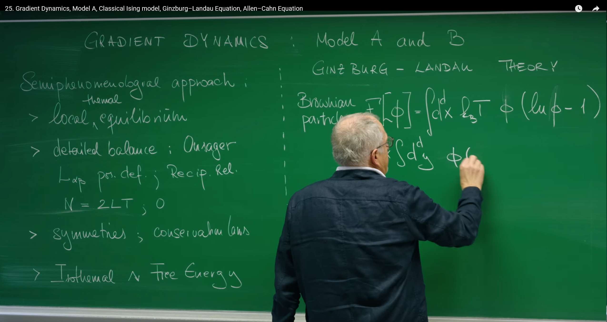 从上一讲建立的昂萨格理论等普适概念出发,我们成功地为一类重要的物理过程——非守恒序参量的弛豫——构建了其动力学的具体框架,即模型A (Model A) 。整个过程贯穿了三大核心概念支柱: