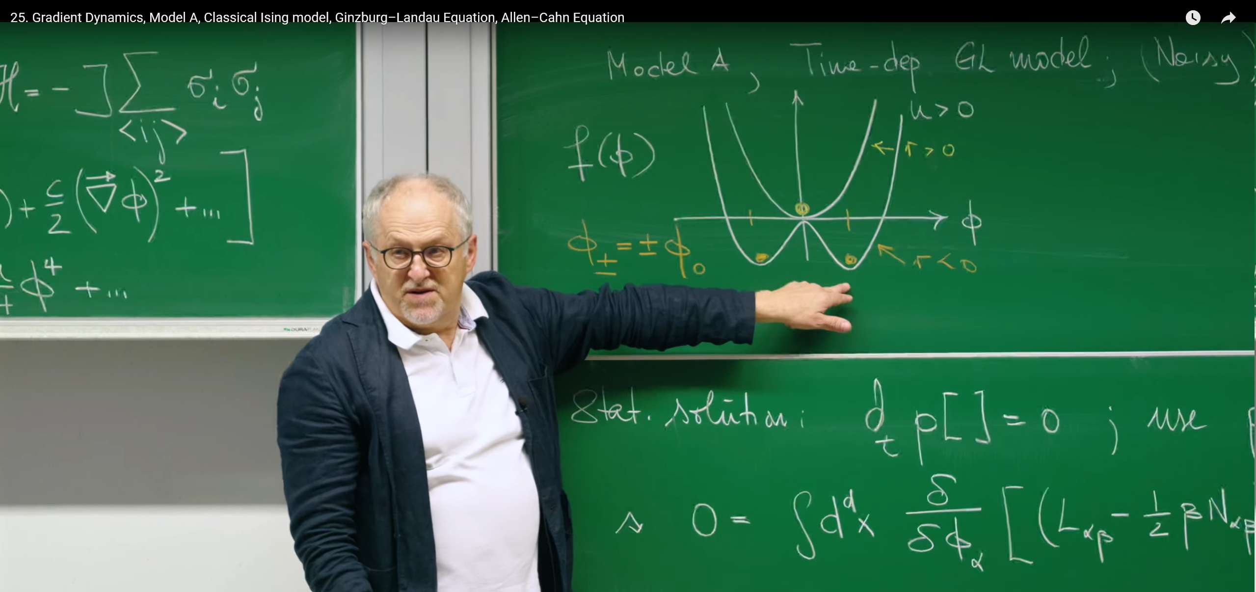 模型A的动力学由一个朗之万方程 (Langevin equation) 描述,这是本讲的核心方程: