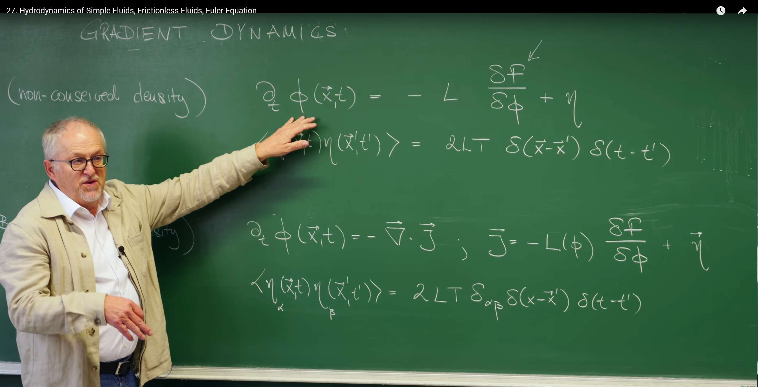 在我们对近平衡系统动力学的探索中,已经深入研究了描述单个标量场 (scalar field) \(\phi(x,t)\)演化的梯度动力学 (Gradient Dynamics)。为了更好地衔接本讲的内容,Erwin Frey 教授首先简要回顾了其核心思想,并阐明它是如何自然地引向更为宏大和普适的流体动力学理论的。