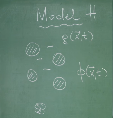 因此,这节课的核心任务可以被看作是推导出这个关键的耦合项 \(\Sigma_{ij}^\phi\) 以及描述平流的粒子流项,从而闭合这个粒子与流体之间的动态反馈回路。目标并非仅仅推导两个独立的方程,而是在揭示它们之间相互作用的深刻物理联系。通过H模型的研究,能够更全面地理解复杂流体-粒子混合系统中的集体动力学行为。