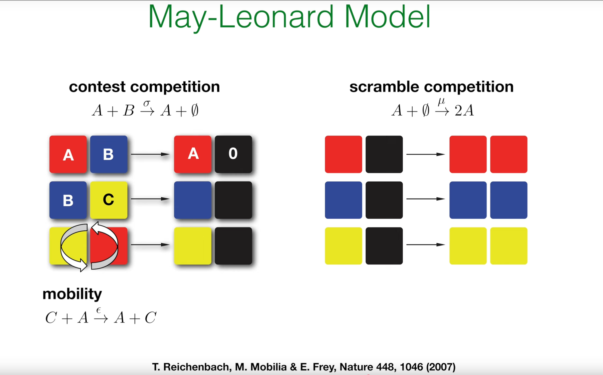 - \(A + B \xrightarrow{\sigma} A + \emptyset\) (A 捕食 B)