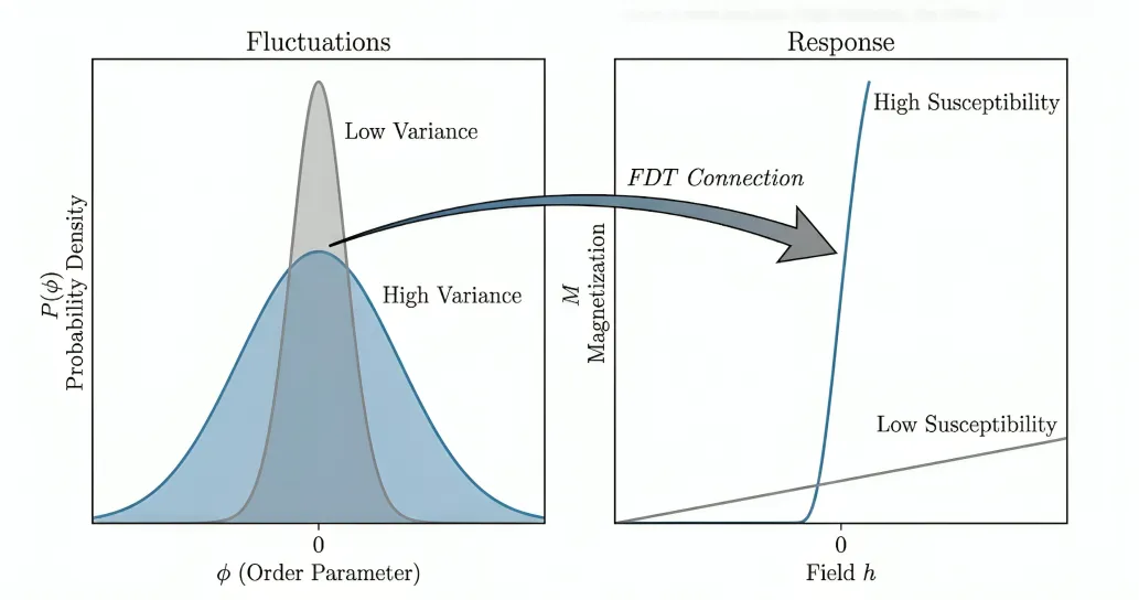 When the geometric picture of free energy is revealed, the essence of physical processes also becomes apparent: the system engages in an eternal tug-of-war between energy and entropy. At low temperature, energy dominates, and the system tends toward order; at high temperature, entropy dominates, and the system tends toward disorder; at the critical point, the two are evenly matched, leading to scale-free fluctuations and self-similar structure. Through the geometric deconstruction of the Legendre transform, the "point description" of internal energy \(U(S)\) gives way to the "tangent line description" of free energy \(F(T)\), whose physical meaning lies in switching from a framework of strictly fixed energy (microcanonical) to a framework allowing energy fluctuations (canonical ensemble). The curvature of free energy, the response functions corresponding to its second derivatives, and the fluctuation-dissipation theorem (FDT) together reveal: macroscopic response is a mapping of microscopic fluctuations, and the explosion of fluctuations near the critical point means the complete collapse of standard statistical techniques.