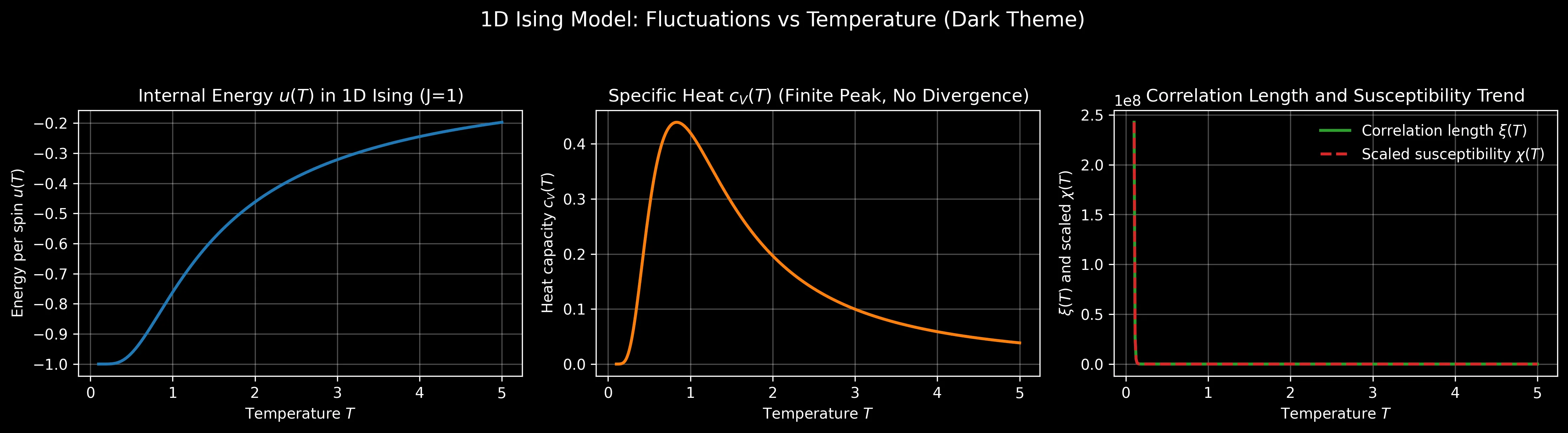 • Physical picture: The weights of different energy states are nearly equal. High-energy and low-energy states have similar probabilities. The system jumps wildly among all microstates, exhibiting maximum randomness. In the Ising model, spins flip randomly, and total magnetization is zero.
