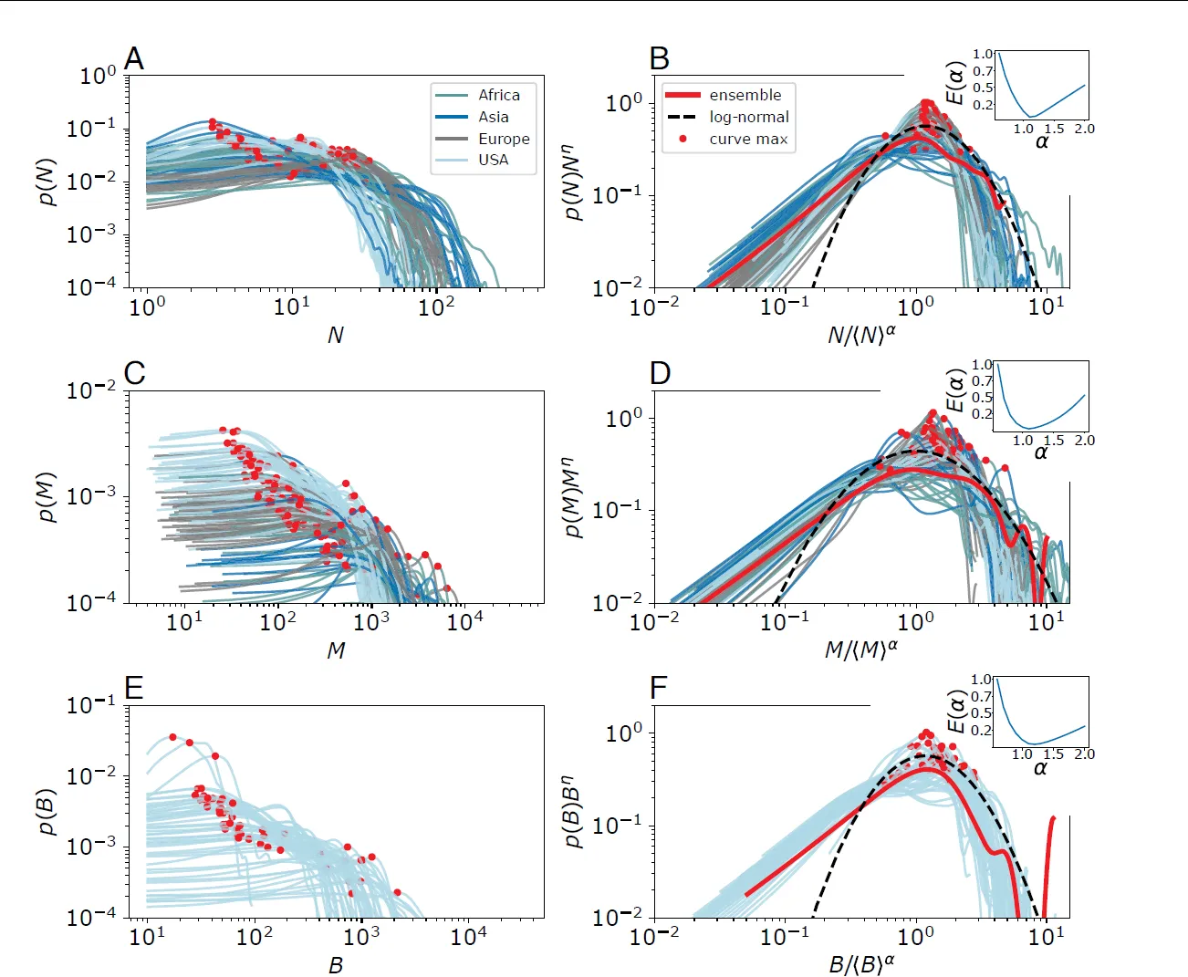 ax4.set_xlabel('$(p - p_c) N^{1/\\bar{\\nu}}$', fontsize=12)