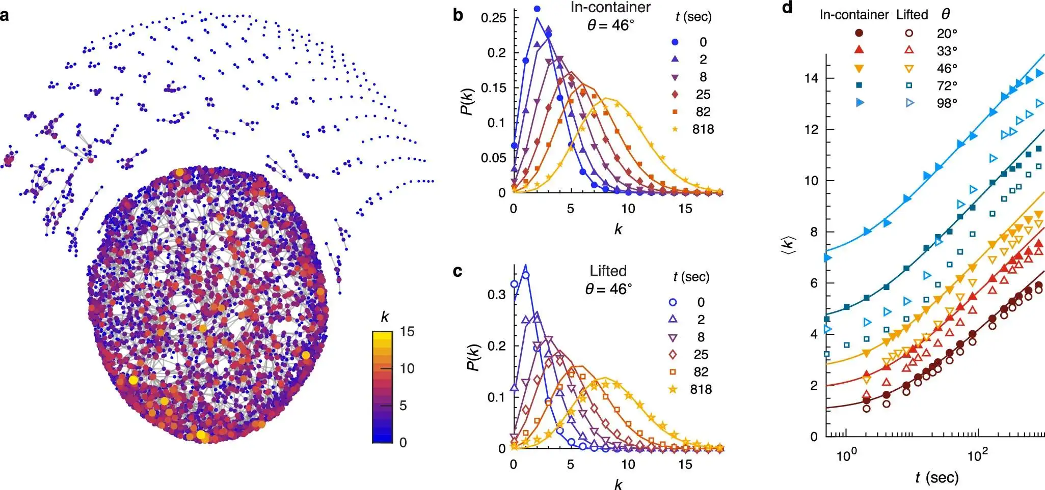 Network Representation and Degree Distribution Statistics of Entangled Granular Clusters. Image Source: Kim, S., Wu, D. & Han, Y. Percolation Transition in Entangled Granular Networks. Nat. Commun. 16, 11410 (2025).