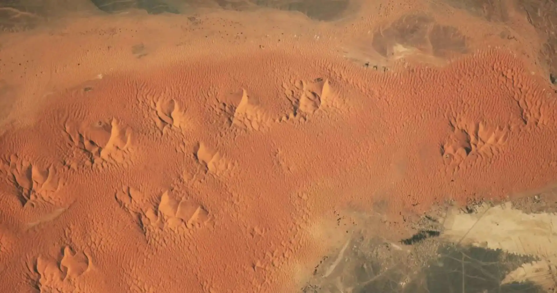 Sand dunes: Shows huge dune patterns shaped by wind in Morocco. These dunes form over centuries and are another type of self-organized pattern formed by granular media under wind forcing.