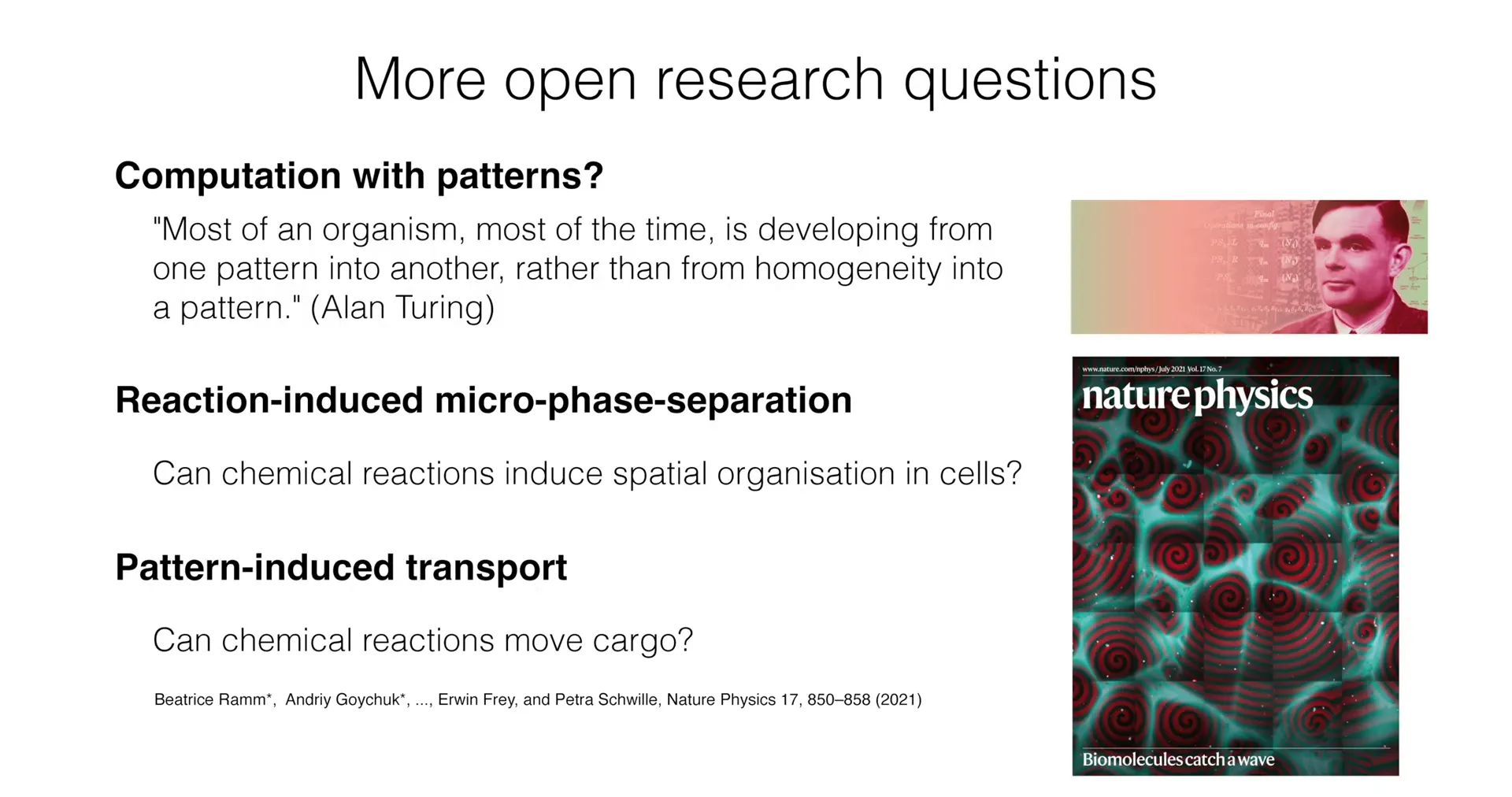 - Computation with patterns? Can the complex spatiotemporal patterns within cells be used to perform some form of information processing or "computation"? As Alan Turing, a pioneer of modern computing theory, himself speculated.