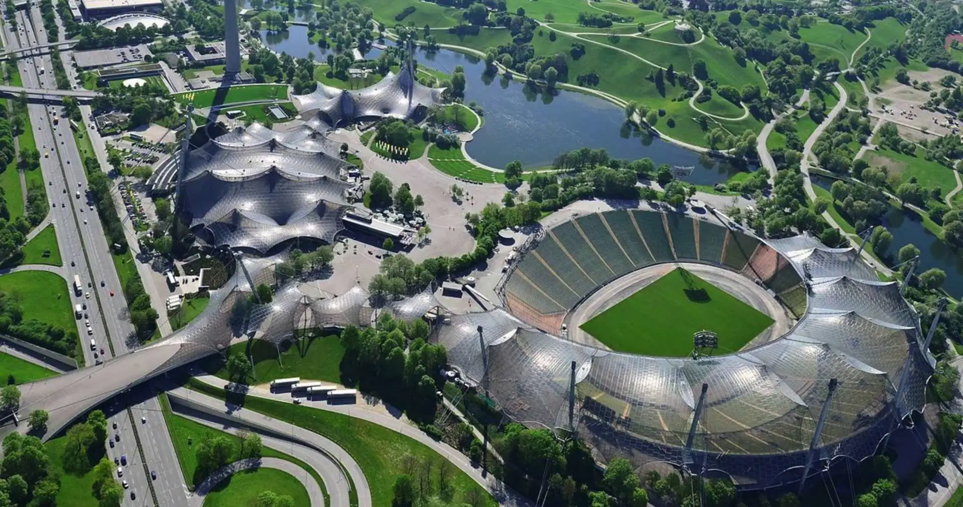 To intuitively illustrate the physical connection between interface tension and geometric shape, the professor first displayed the tensile membrane structure of the 1972 Munich Olympic Stadium.