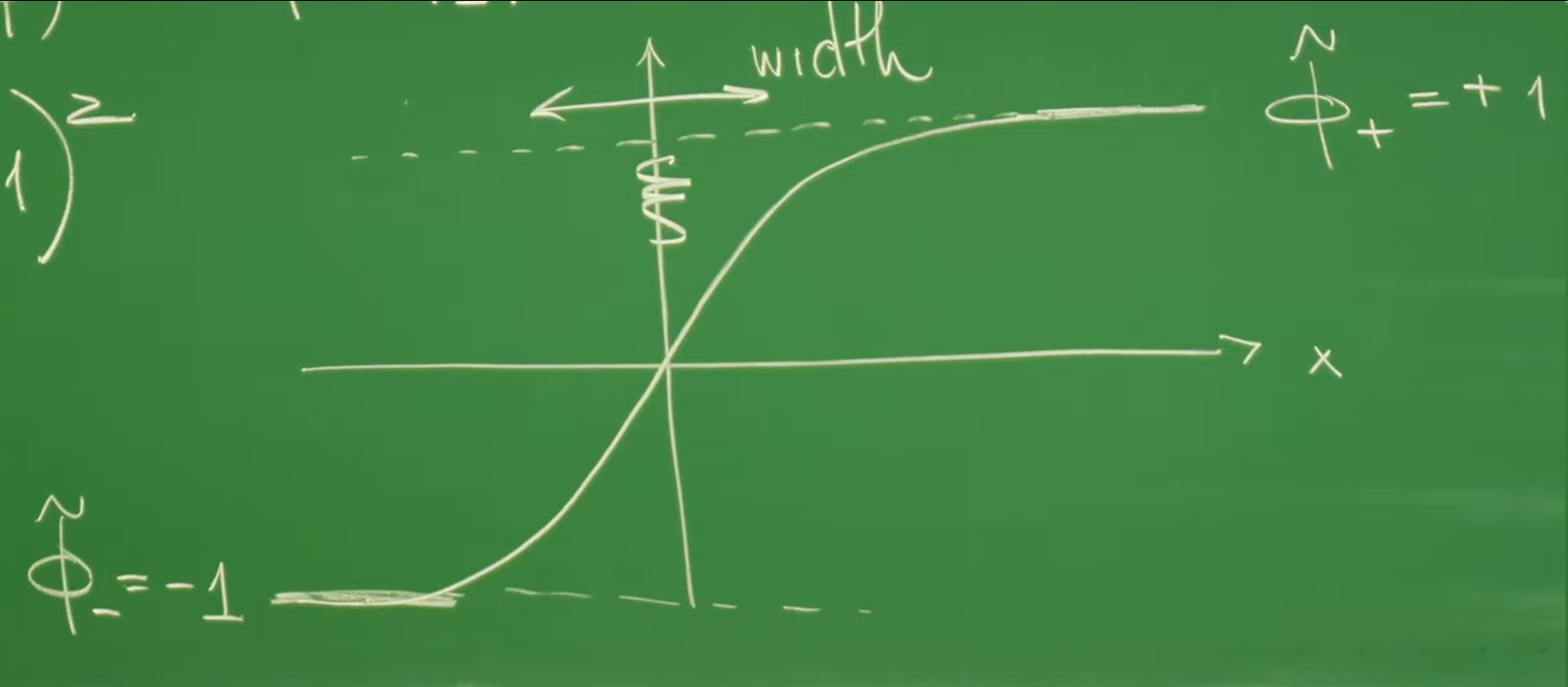 \[ \phi(x) = \phi_+ \tanh\left( \frac{x - x_0}{\xi} \right) = \sqrt{\frac{r}{u}} \tanh\left( \sqrt{\frac{r}{2\kappa}} (x - x_0) \right) \]