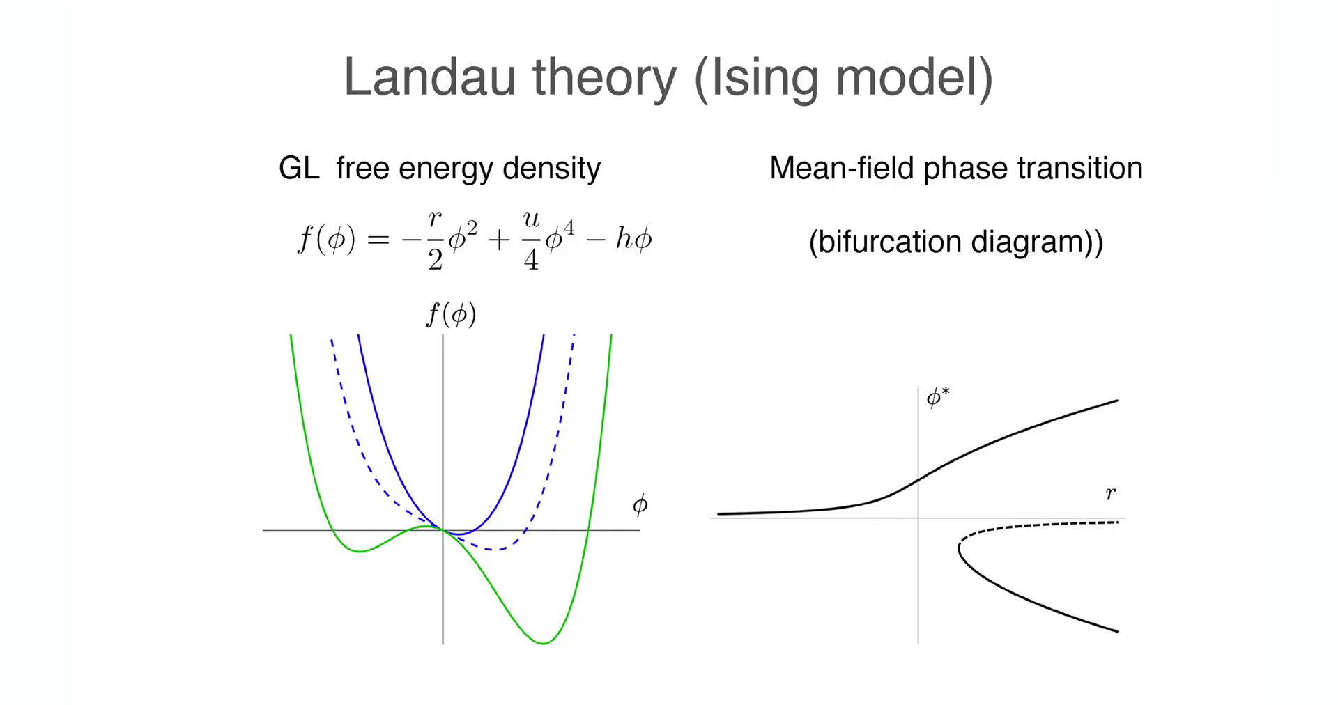 \[ f(\phi) = -\frac{r}{2}\phi^2 + \frac{u}{4}\phi^4 - h\phi \]