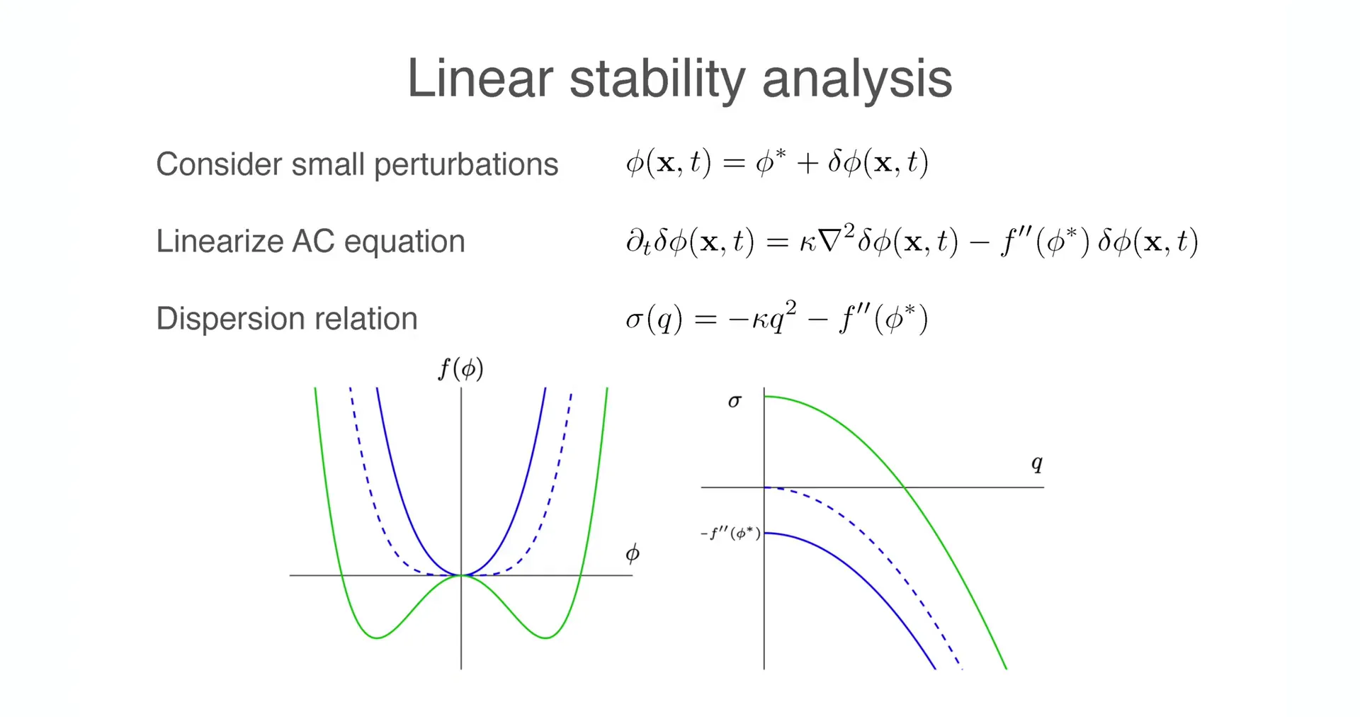 Currently, analysis of interface motion is mainly based on qualitative analogies (such as soap bubbles) or numerical observations. The next lecture (Lecture 10) will introduce a core technique of theoretical physics—Singular Perturbation Theory. Starting from the Allen-Cahn equation, through Multiscale Expansion, the course will rigorously derive the interface motion equation. This will prove that "curvature-driven flow" is not merely an intuitive analogy, but a rigorous mathematical conclusion of Model A in the sharp interface limit, thus closely connecting reaction-diffusion systems with differential geometry, and laying the foundation for understanding biological membrane dynamics and crystal growth.